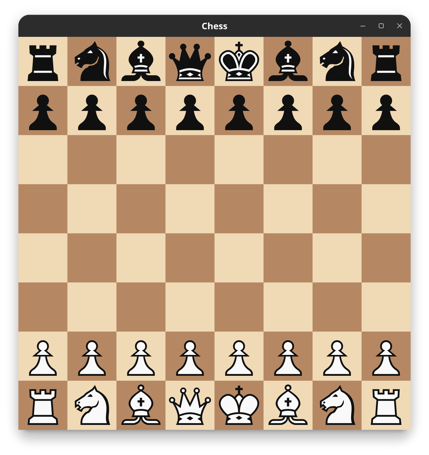 This is now all the code and objects we need for the whole board, before this optimisation it would have been a bit more overwhelming. And we are successfully drawing to all the correct positions as shown below (its the same initial position image from before but it works trust me).